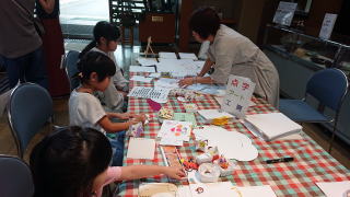 9月23日(火・祝)に「大宮ふれあい工房」(京丹後市大宮町)で開催された『丹後で福祉とアートをつなぐ TANGO まるっぽ美術館』のスペースをお借りして点字体験ブースを設けました。 当日は、作品鑑賞に訪れた親子連れが、ブースに立ち寄って、点字体験されました。子供たちがコツコツと打つ点筆のリズムが心地よく響いていました。