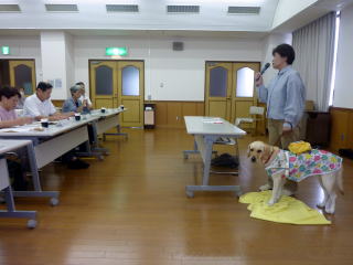 9月29日(月)に京丹後市役所弥栄庁舎で開催された「弥栄町民生児童委員協議会研修会」で講演しました。 丹後で35年ぶりの盲導犬ユーザーとなられた当事者講師の井上恵美さんのお話や盲導犬の実演、点字体験などをとおして民生児童委員のみなさんに視覚障害について理解を深めてもらいました。 質疑応答など活発に行われ、たいへん有意義な研修会になりました。